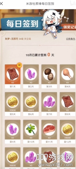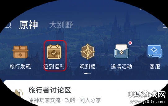 3.在原神板块,点击签到福利位置,就能进行签到了。