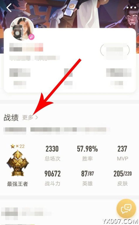 2、随后需要点击进入好友的个人详情页面,从中点击“战绩”选项(如下所示)就能够查看具体数据了。