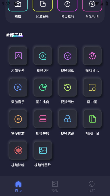 3、通过导入相册视频或照片,实现添加字幕、滤镜切换、提取背景音乐、视频倒放、视频拼接等操作