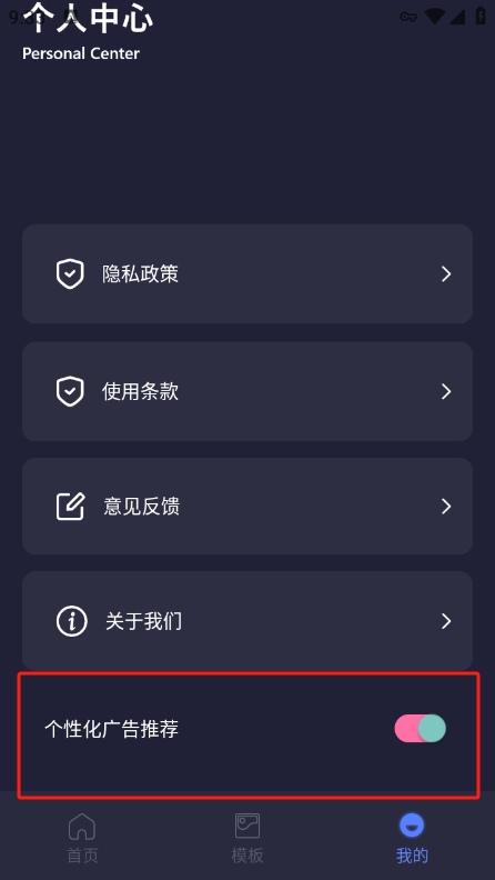 3、在这里把最下面的“个性化广告推荐”关掉即可