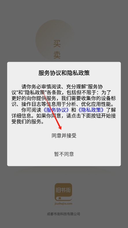 2、进入后阅读并同意用户服务协议