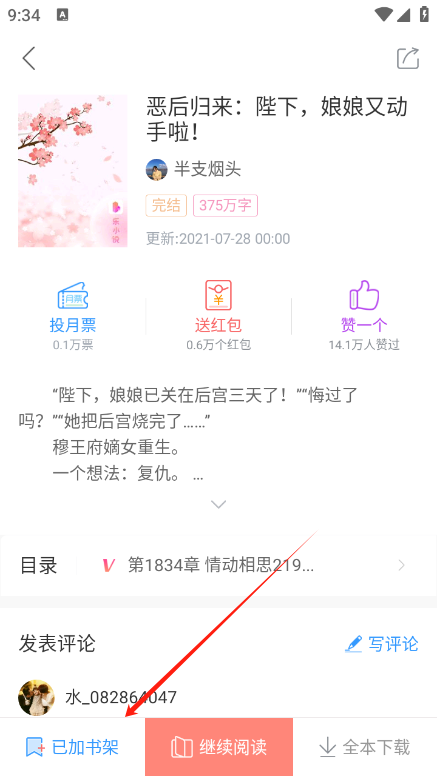 然后能够在书架上看到你想看的小说了