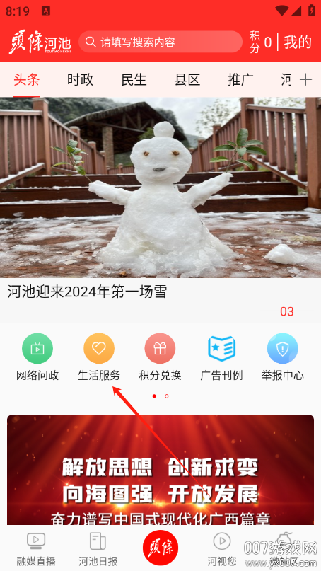 1、在本站下载安装头条河池app并进入