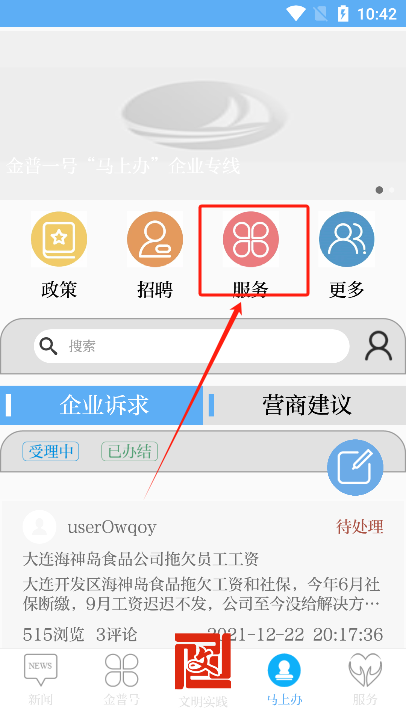 4、在马上办板块,点击服务,可以通过线上办理相关服务
