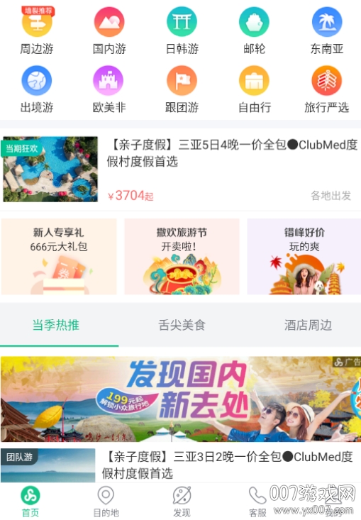 基于当前出发城市或定位城市,推荐各种旅游组合,