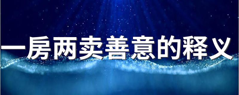 一房两卖善意的释义 一房两卖善意的释义盘点