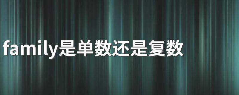 2、family作主语时,谓语动词有时用单数形式,有时用复数形式,视具体情况而定。当我们把“家庭”作为一个整体的抽象概念来考虑的时候,谓语动词用单数,当我们把“家庭”理解为“全家人”的时候,谓语动词用复数形式。