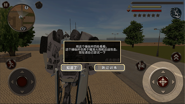 1、进入游戏后,我们可以是由左下角的轮盘进行操控机器人移动;