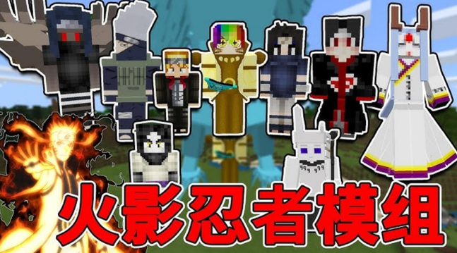 我的世界火影忍者模组,各种各样的忍术可以学习,以及各个角色的衣服、武器以及疾风传中所有关键人物和怪物。