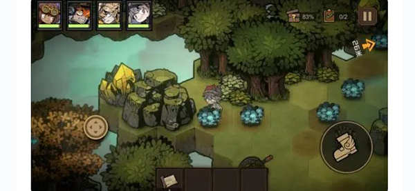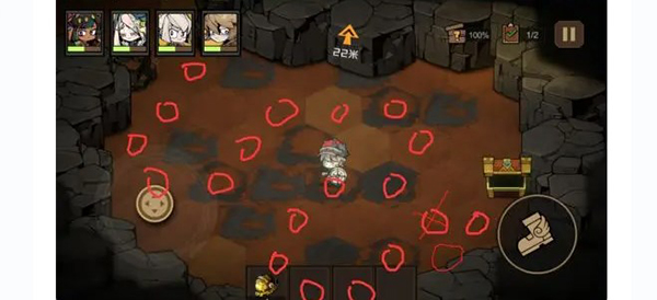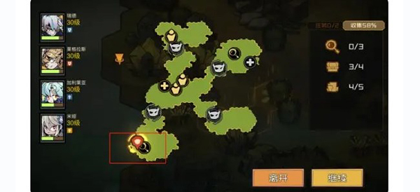 想要拿到上古卷,需要先拿到两个宝石打开机关,在出现对话选择的时候选择拿走,之后跟着箭头走原本巨石挡住的路,即可离开。这一关可以开启战斗的二倍速。这是另外一个探索点的位置。在最左边尽头的最边缘。