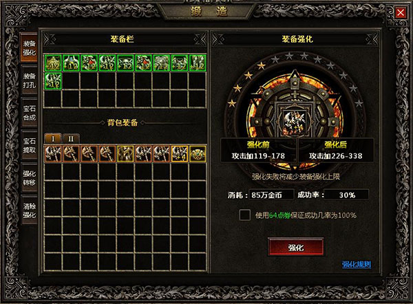 强化系统是游戏中的一个重要的提升能力的系统,可大幅增加装备的属性