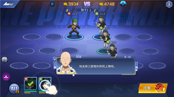 one punch man游戏是一款由知名动画《一拳超人》正版授权的角色扮演类格斗游戏,这款游戏经典复刻了大量的游戏角色,并且保障了原汁原味的游戏画风以及角色设定,是一款玩起来热血澎湃的格斗游戏,难道玩家不想体验一下因为变强而变秃的游戏感觉吗?赶快来下载吧!此版本为国际版。