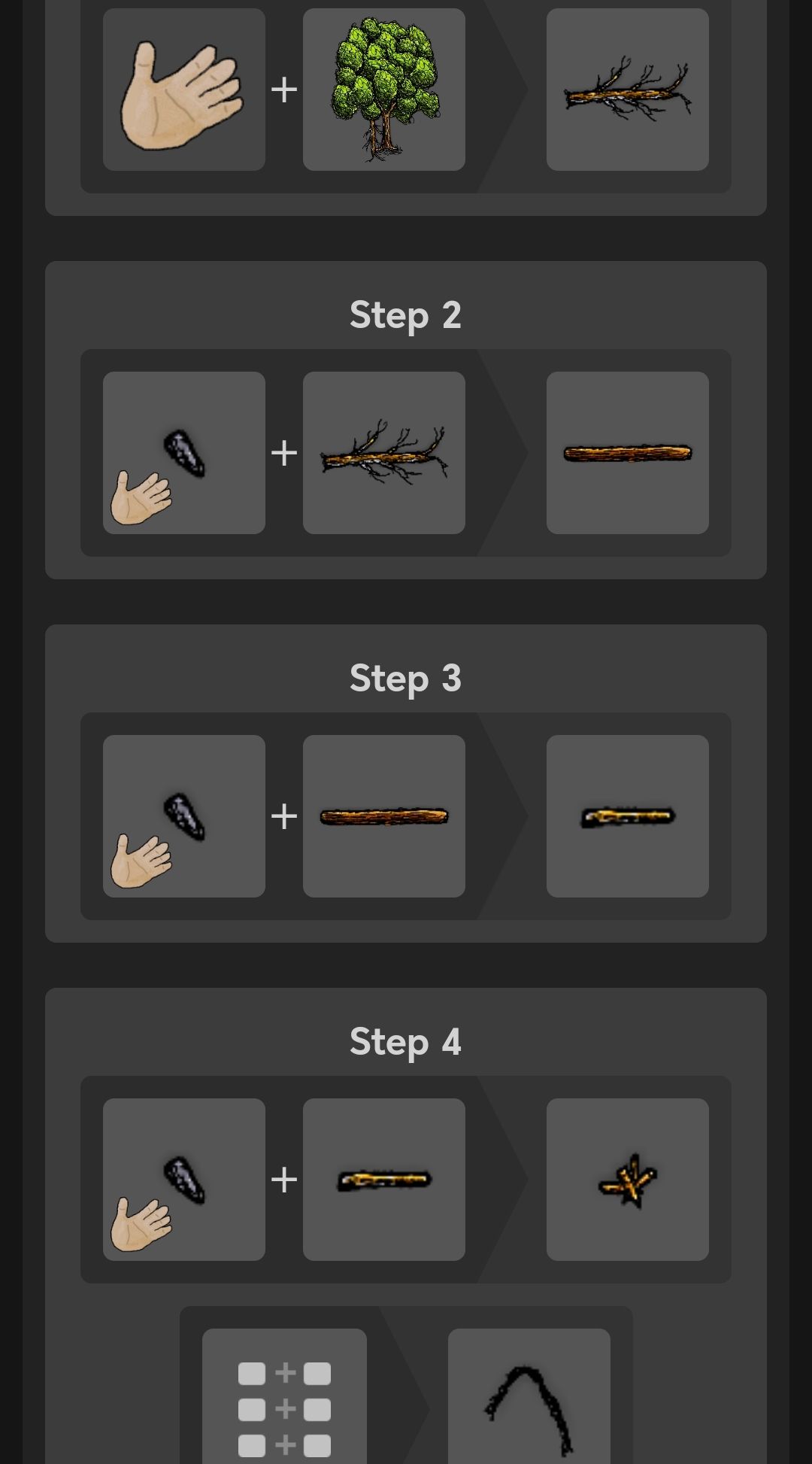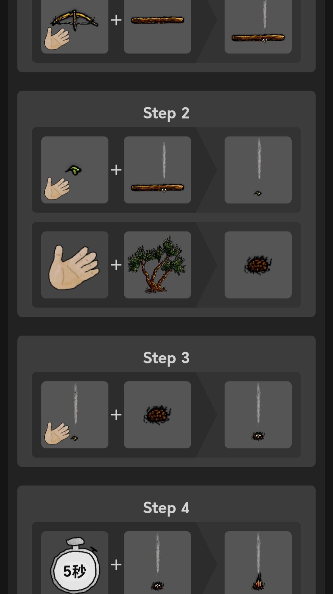 木棍使用尖石划一次得到短木棍,再从白杨树上拿一个弯树枝用尖石划一次把绳子放在上面,最后把短木棍放上去得到取火弓