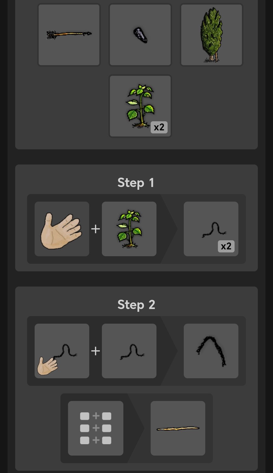 一个遂石放在地面使用尖石划一次得到遂石箭头,把线放在杆子上,再放上箭羽和箭头获得箭