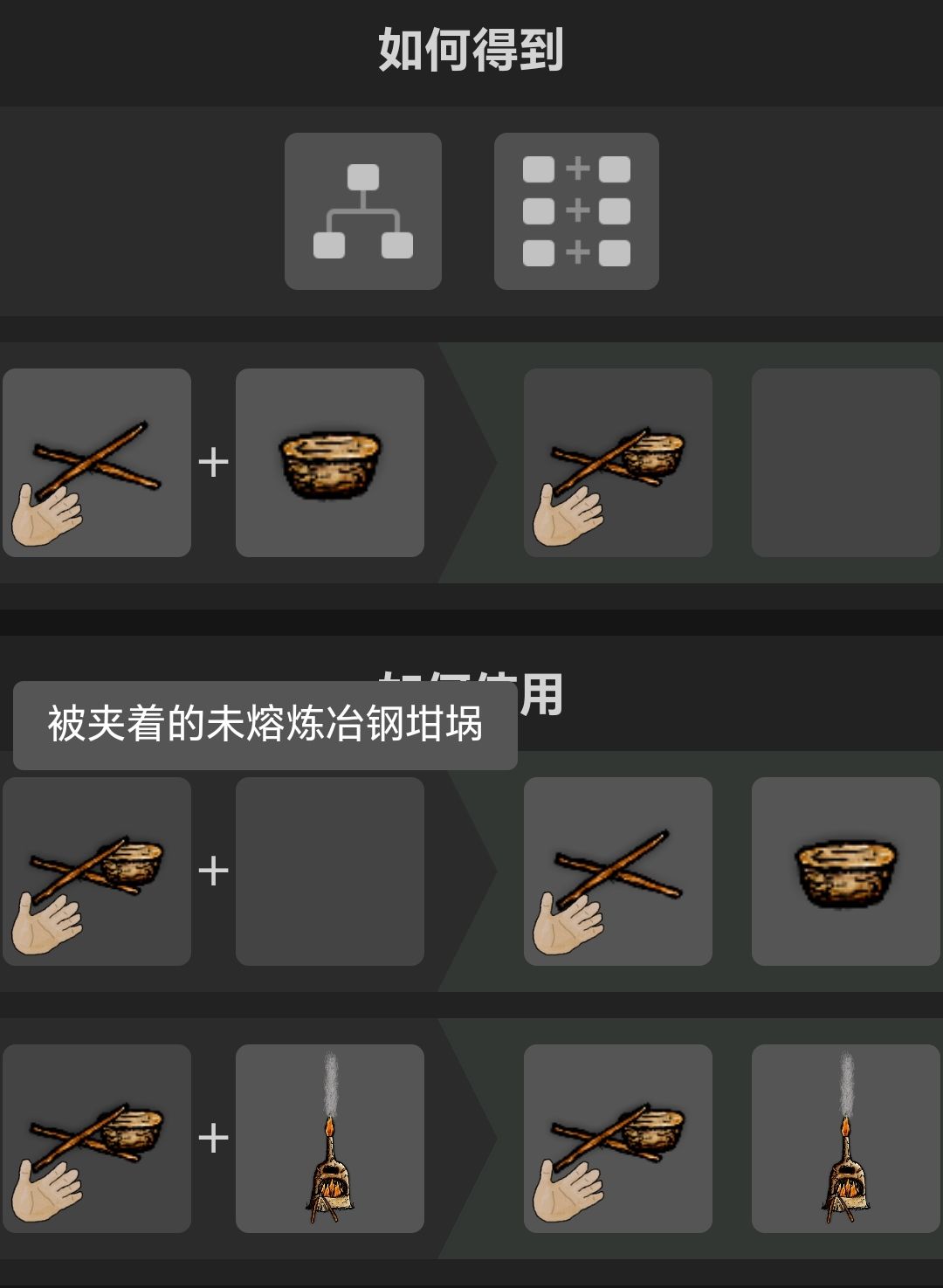 把一个木棍放在地面使用遂石划一次得到木钳,制作两个放一边