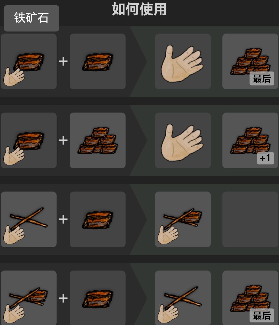 使用石头打一次扁石上的热铁,得到锻铁