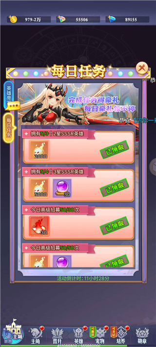 每日任务记得完成第一天是招募次数,第二天是星级这个别的攻略有,我就不啰嗦了