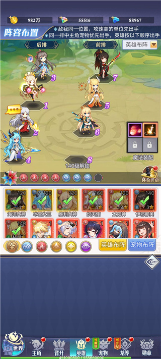 贴一下我目前阵容,因为要卡战力所以没怎么搞(这个后面会讲)推荐前排火盾水盾,然后战士后排奶妈跟核心控制或者输出