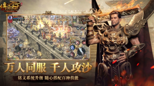 《传奇天下》是一款正版授权、精心打造的传奇类手游。游戏在战法道三职业、打怪打宝、红名pk、行会攻沙等经典元素的基础上,集结端游研发团队,通力合作,用前沿的UE4引擎,刻画精细的生态环境、栩栩如生的人物模型;再配合铭文加持下的全新技能特效,打造震撼的多人同屏,纯血火拼的攻沙玩法,致力于为玩家们带来指触间的城战体验!