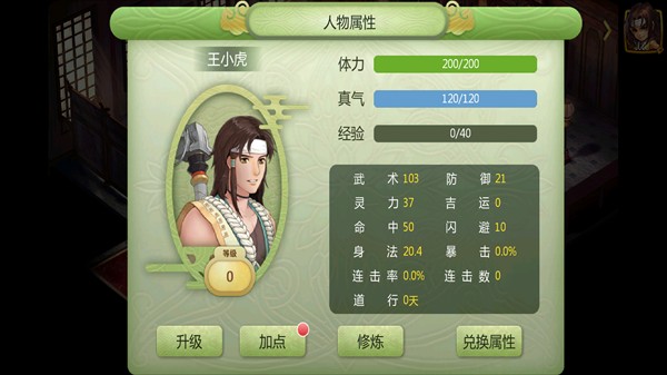 5、点击右上角头像即可查看自己的属性,并进行升级培养。