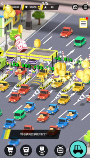 3、操作没有什么难点,玩法的核心就是通过不断建设收费站,升级设施获得更多的利润。