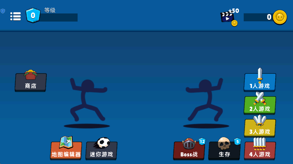 1、提供多个火柴人角色供玩家选择,每个角色技能各异。