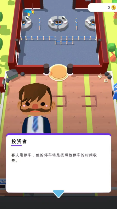 看!客人刚停车,这里的停车场是按照停车的时间收费的,而这也是你收入当中的一部分,车位数量越多,越容易为你带来更多的顾客,所以抽时间一定要及时的升级扩建您的停车场。