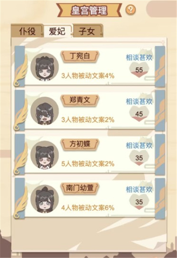 策略性选择后宫佳丽,进行进谏与寻访,增添趣味。
