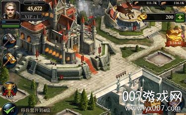 3、城堡需要快速升到15级,不间断获取更多的资源,还能够训练车兵,加速资源上的采集。