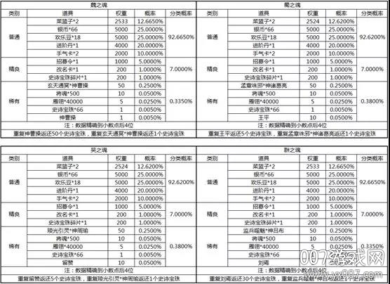 魏之魂、蜀之魂、吴之魂、群之魂概率公示: