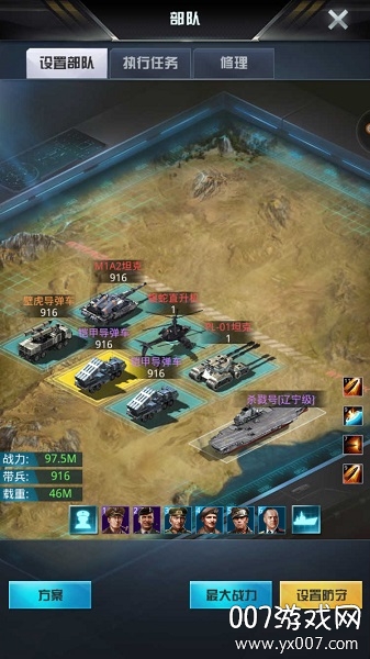 2、坦克,特种兵,飞机,和导弹车等等多种战斗单位供你调遣,还可以升级自己的军备物资;