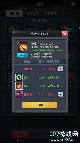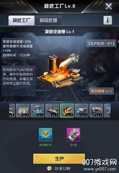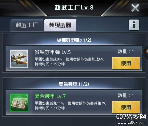 有了上两样还不够,有条件的军团尽量让军团成员分工,各自生产超级武器中的贫铀穿甲弹精通,复合装甲精通,凝固汽油弹精通,他们分别是加全军团攻,防以及攻城速度。