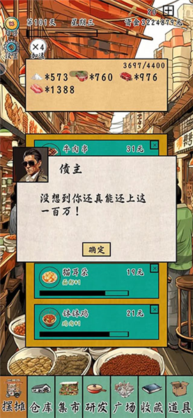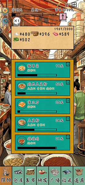 摆摊一百天无限金币版游戏下载安装是修改之后的版本,玩家开局进入游戏可以无条件使用铲铲,还有些金币材料也能无条件免费使用哦,玩家可自由选择摊位类型,通过道具系统和成就挑战提升经营效率将传统摆摊与金融投资结合,搭配轻松幽默的美术风格和地域特色小吃系统,营造出独特的市井氛围。