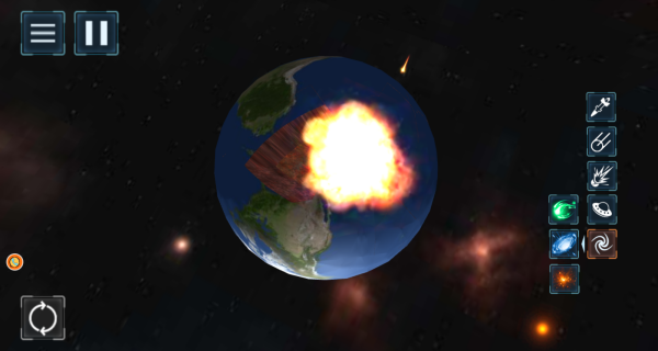 模拟破坏星球游戏是一款玩法很过瘾的星球破坏模拟游戏,简单的操作,你只需点击选择灾难类型,就可以看着星球在你的面前毁灭,那瞬间的画面和场景,非常的让人震撼,你可以感受到其中的惬意,而且如果你想恢复,点击重置按钮就可以让一切复原!