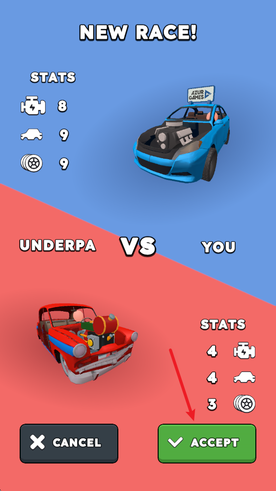 4、组装好赛车后,我们就可以点击左侧RACE开始比赛,匹配到对手后即可开始。