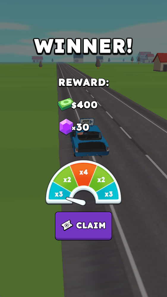 5、比赛中,点击屏幕即可加速前进,拖动即可左右移动。