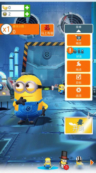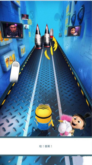 3、黄色小胶囊可爱至极,玩家可以使用跑酷中收集到的香蕉,给它们更换不同的服饰和装备。在游戏的开始界面,本作采用了和《会说话的汤姆猫》一样的设定,你只要触摸小胶囊身体的各个部位,它就会做出各种不同的反应,来逗你开心。