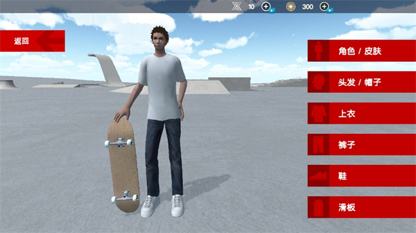 1、打开游戏界面点击开始游戏先去帮助人物角色来搭配服装造型,然后再去选择滑板花色开始进入到场地进行闯关挑战。