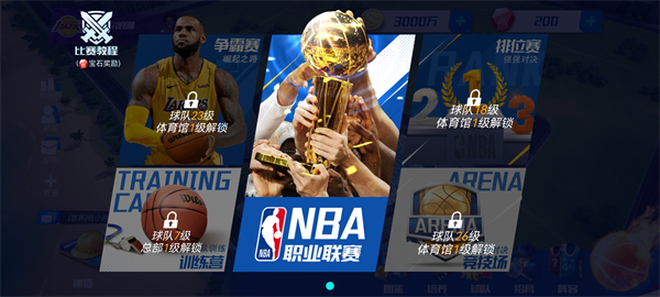 按球队等级和建筑要求,逐步解锁争霸赛、NBA 职业联赛等赛事,获取宝石等丰厚奖励。