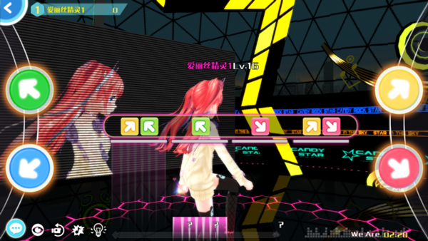 动感模式是《心舞》精心打造的一种别具特色的模式。屏幕两侧会出现四个斜角方向的键位,玩家需要在屏幕下方的光条与中央的键位重合时根据指示的键位按下对应的方向键。动感模式创新的设计让各位小伙伴在游玩经典模式之外也能尝试让人眼前一亮的别样玩法!