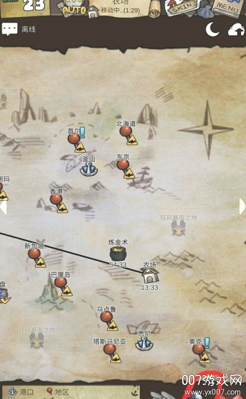卷轴:地图,点击进入可以查看地图,改变航线,行进中会显示到达目的地的剩余时间