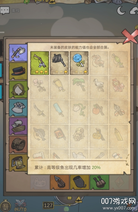 skin : 收集的鱼竿,装扮等,能小小的满足下喜欢收集的玩家的需求。