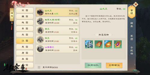 如果这些技能书、装备恰好适用于你的职业,你的战力就能借此飞涨。如果得到的道具与职业不契合,也能把它们挂到拍卖行,根据装备的附加属性、灵魂锁链的强度合理定价,稀有道具就能轻松变现!十国的数十个BOSS很快刷新,攻坚挑战随时都能进行!
