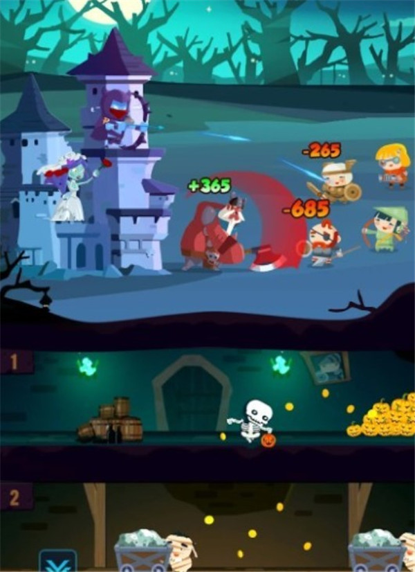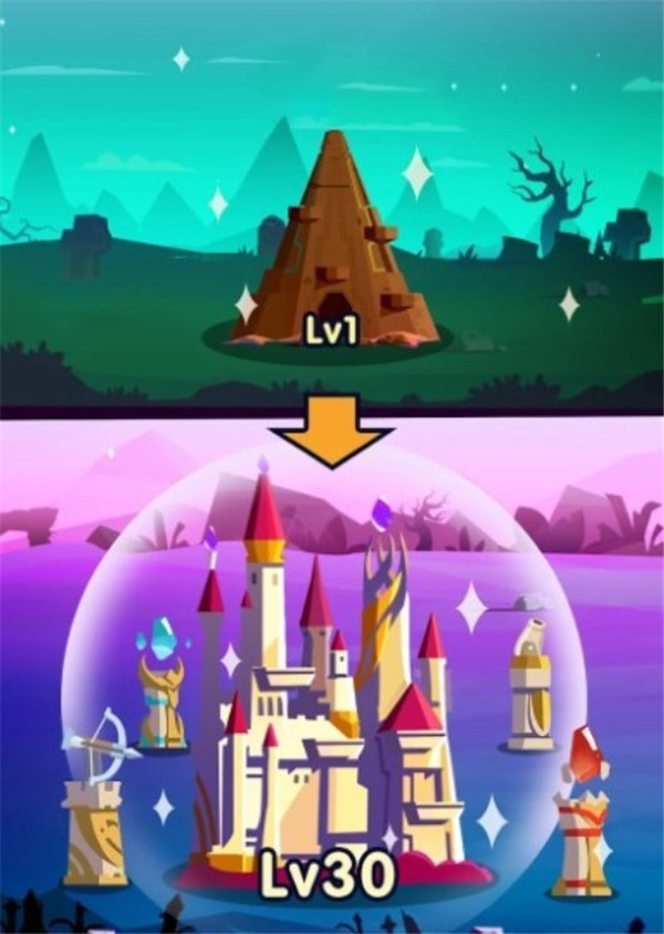 简单但令人上瘾的战斗。你可以通过2265滑动屏幕杀死怪物,并挑战关卡boss。随着游戏的进展,你会逐步建立一个坚实的堡垒。