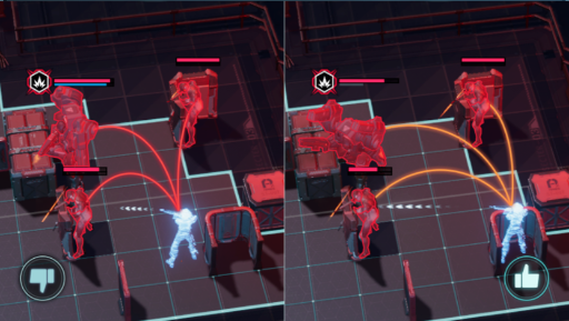 6、部署队友时可以通过观察威胁线来判断敌人的侧击情况,红色线代表敌人可侧击我方,橙色线代表敌人的攻击会被掩体挡住。