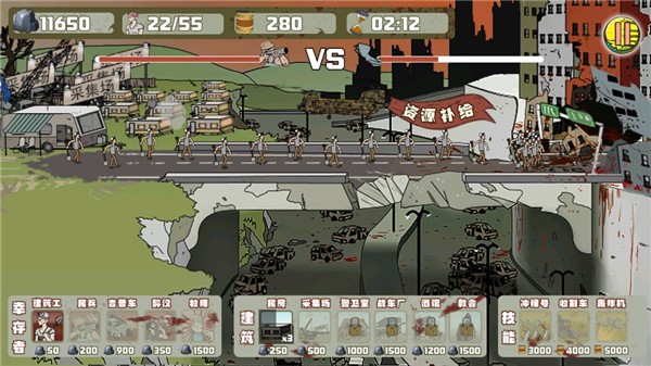3、游戏界面顶端可以看到双方基地血量,派遣幸存者进攻;