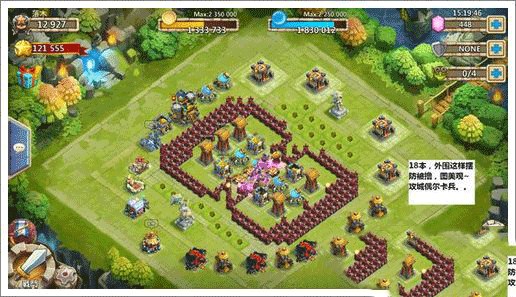 在城堡争霸游戏中,防守建筑包括哨塔、城墙、爆炸陷阱以及英雄陷阱四类。这四类建筑可以帮助城堡有效抵御其他玩家的入侵,而这四类防御工事的可建造数量同样取决于市政中心的等级。所以如何在有限的数量内,最高效率的布防,会是一项非常有意思的挑战。