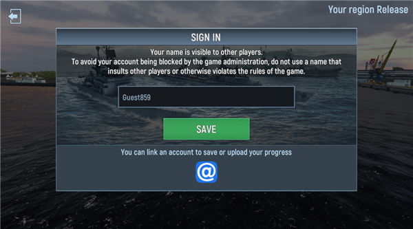 7、在游戏总界面玩家还可以查看任务,自定义战舰外观(玩家可以进行绑定账号,方便下次登录,不然可能更新安装包后找不到账号)。