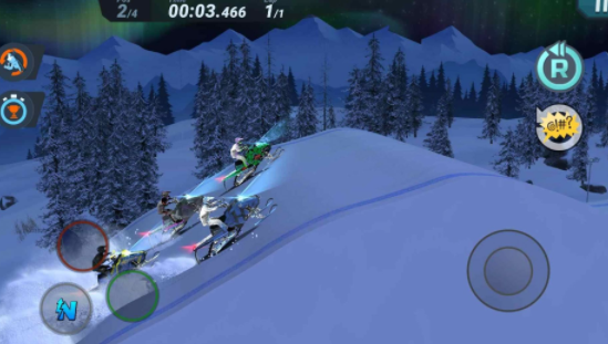 3、骑上自己的雪地摩托去和其他的玩家进行竞速,过程的话也是很精彩很刺激的。
