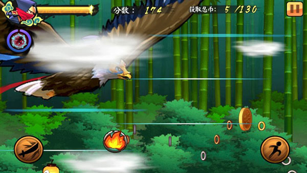 1、玩家只需使用手指轻轻点击屏幕,即可轻松操控忍者进行冲刺与战斗。